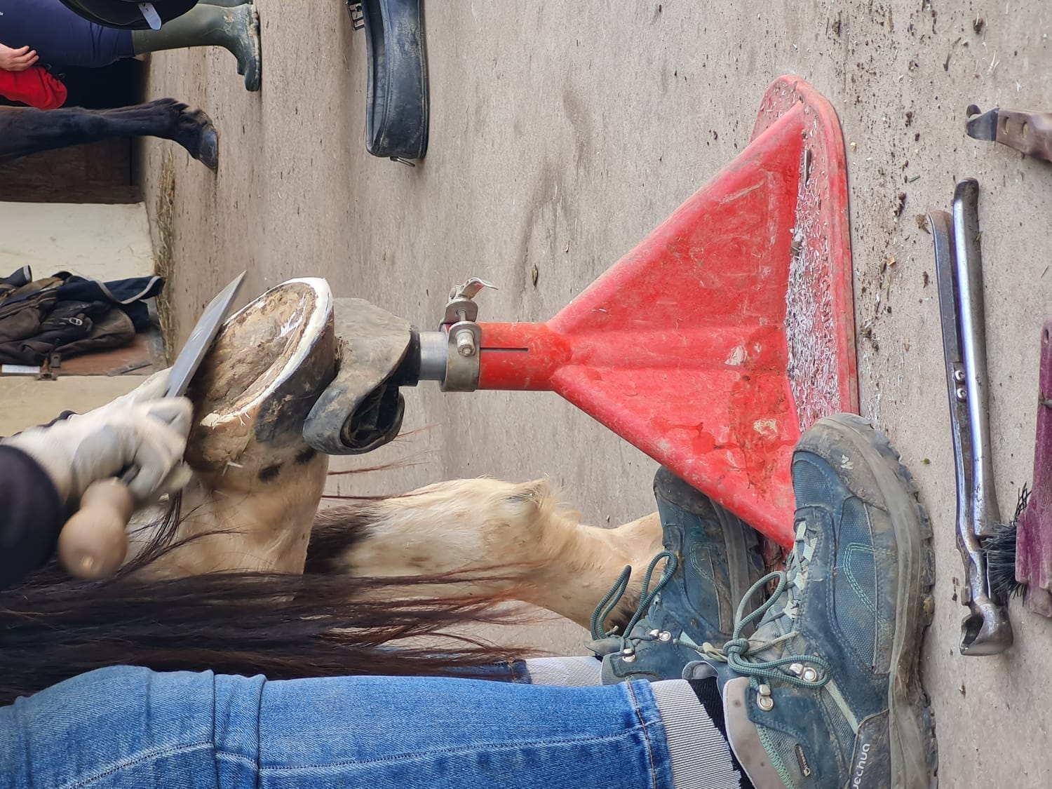 Par exemple, les connaissances et les compétences que je transmets ici ne sont pas assez complètes si tu souhaites t’occuper seul·e des pieds de ton cheval fourbu.