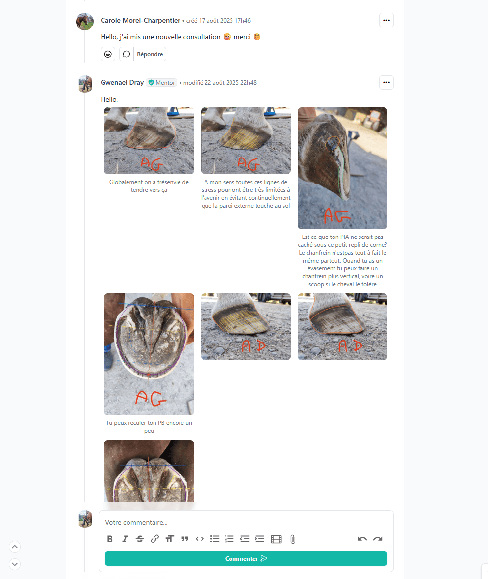 Suite à la journée de pratique tu as devant toi 6 mois de suivi individualisé pendant lesquels je réponds à toutes tes questions concernant les pieds de ton cheval.
